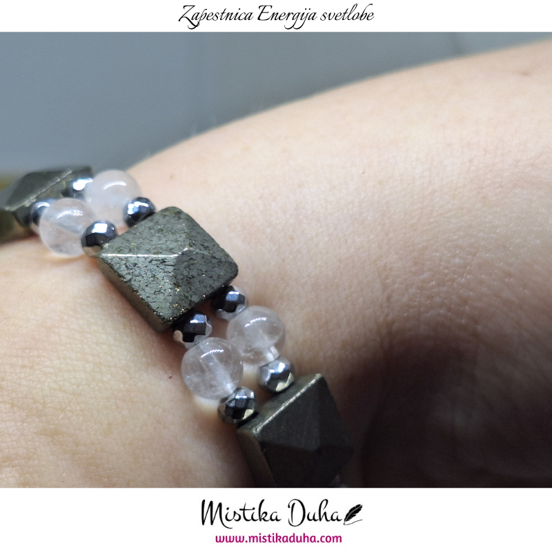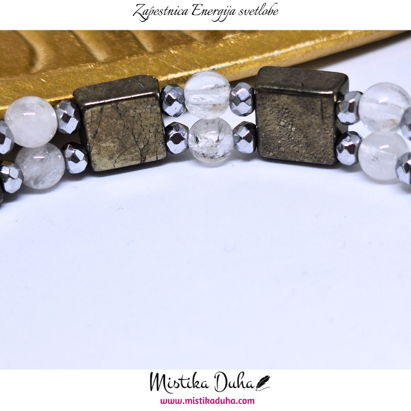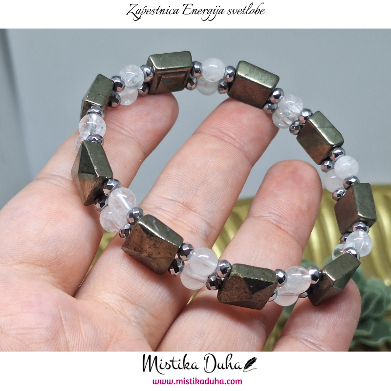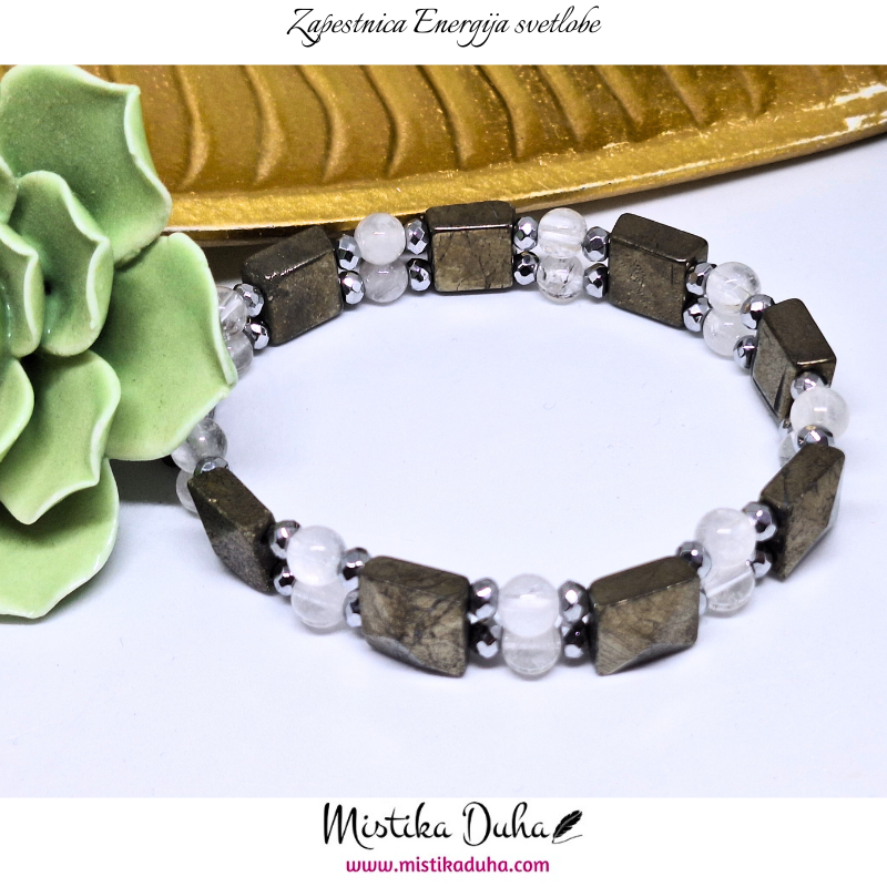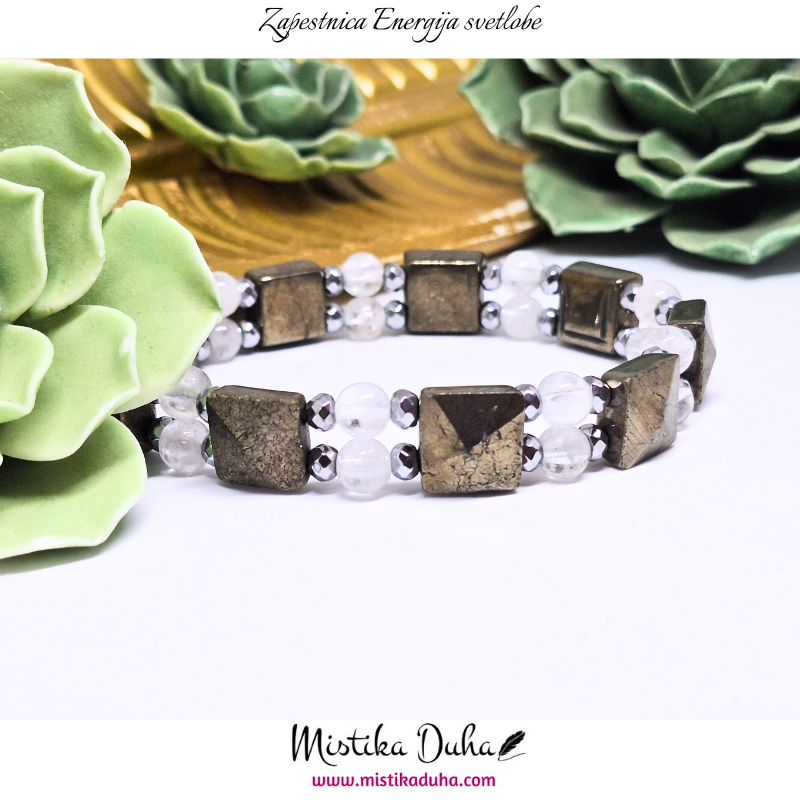 Pirit je kovinsko sijoč mineral, znan po svoji zlato-rjavi, kovinski barvi, zaradi katere ga pogosto imenujejo tudi “kamen bogastva”. Njegova trdna struktura in kristalna oblika ga naredijo vizualno izrazitega, hkrati pa simbolizira stabilnost, moč in vzdržljivost. Pirit je v energetskem smislu kamen, ki spodbuja jasnost, osredotočenost in praktičen pristop k življenjskim izzivom. Njegova energija deluje aktivirajoče in motivacijsko, pomaga pri premagovanju pasivnosti ter spodbuja samozavest in občutek lastne vrednosti.